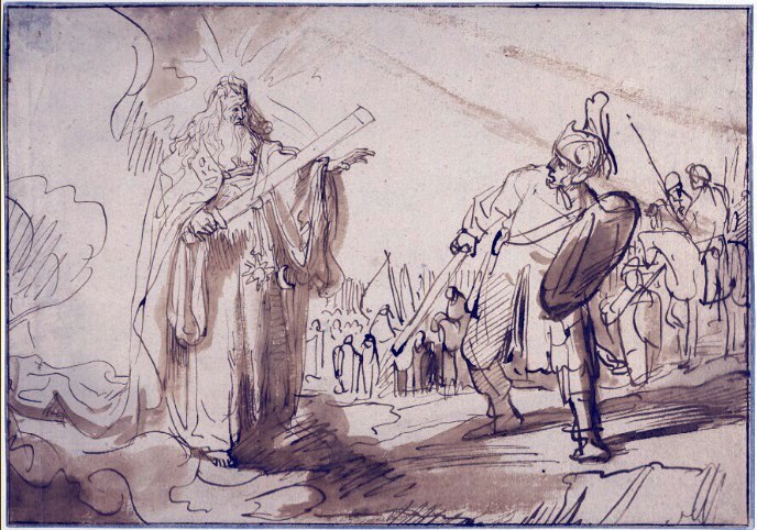 Joshua confronted by the Angel of the Lord Pen and ink drawing by Ferdinand Bol, Rijksmuseum, Amsterdam