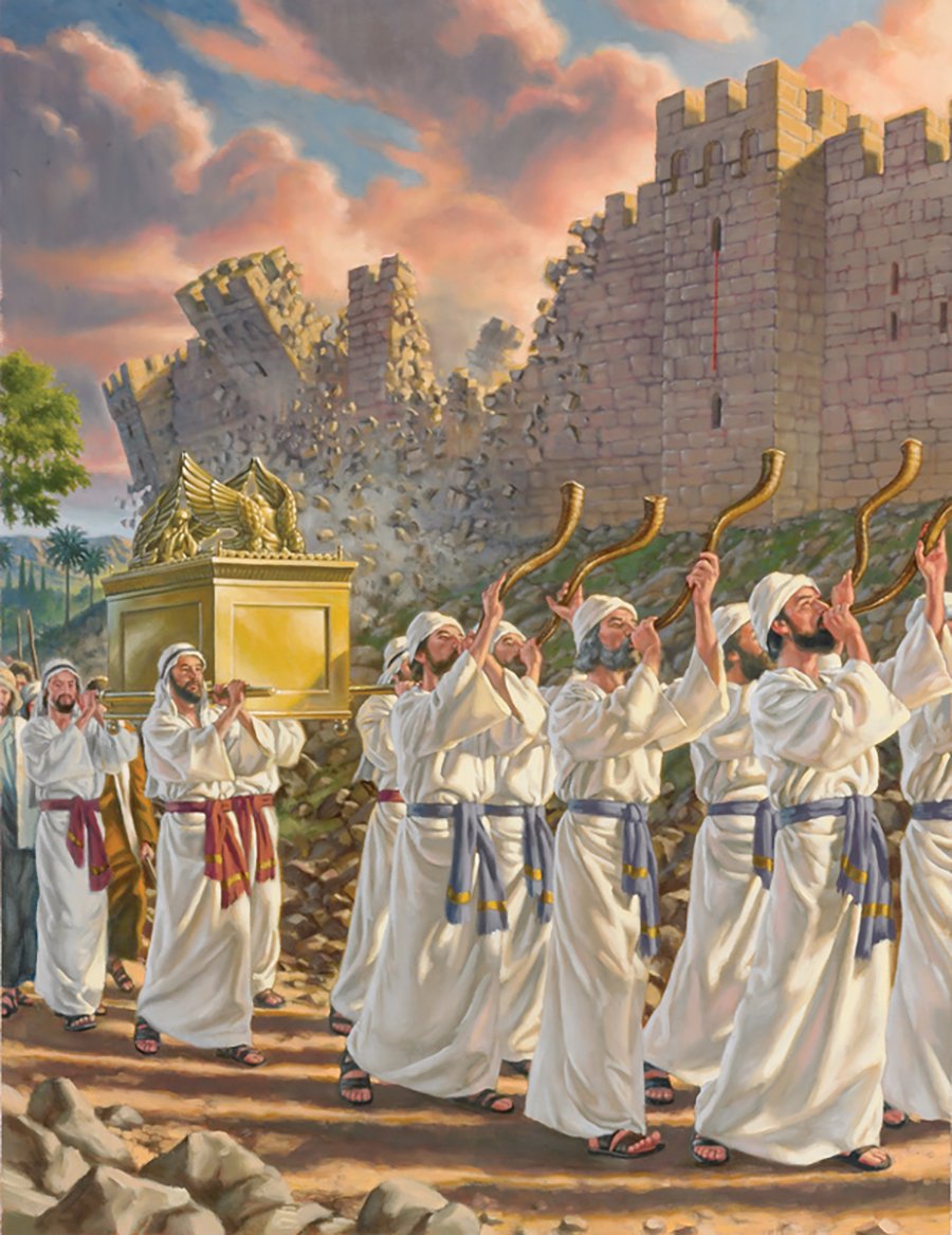 The Lord said to Joshua, “See, I have delivered Jericho into your hands, along with its king and its fighting men. March around the city once with all the armed men. Do this for six days. Have seven priests carry trumpets of rams’ horns in front of the ark. On the seventh day, march around the city seven times, with the priests blowing the trumpets. When you hear them sound a long blast on the trumpets, have the whole army give a loud shout; then the wall of the city will collapse and the army will go up, everyone straight in.”
