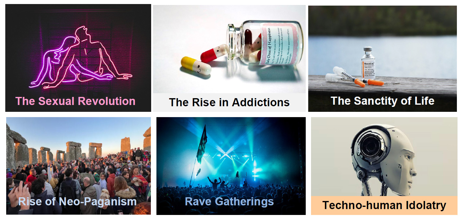 The rise of mass gatherings at rave concerts that openly celebrate rebellion and the use of satanic symbols and heavy metal music that is openly satanic