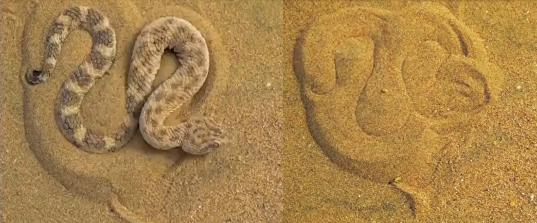 The Saharan Sand Viper is able to hide itself and lie in wait for unsuspecting prey