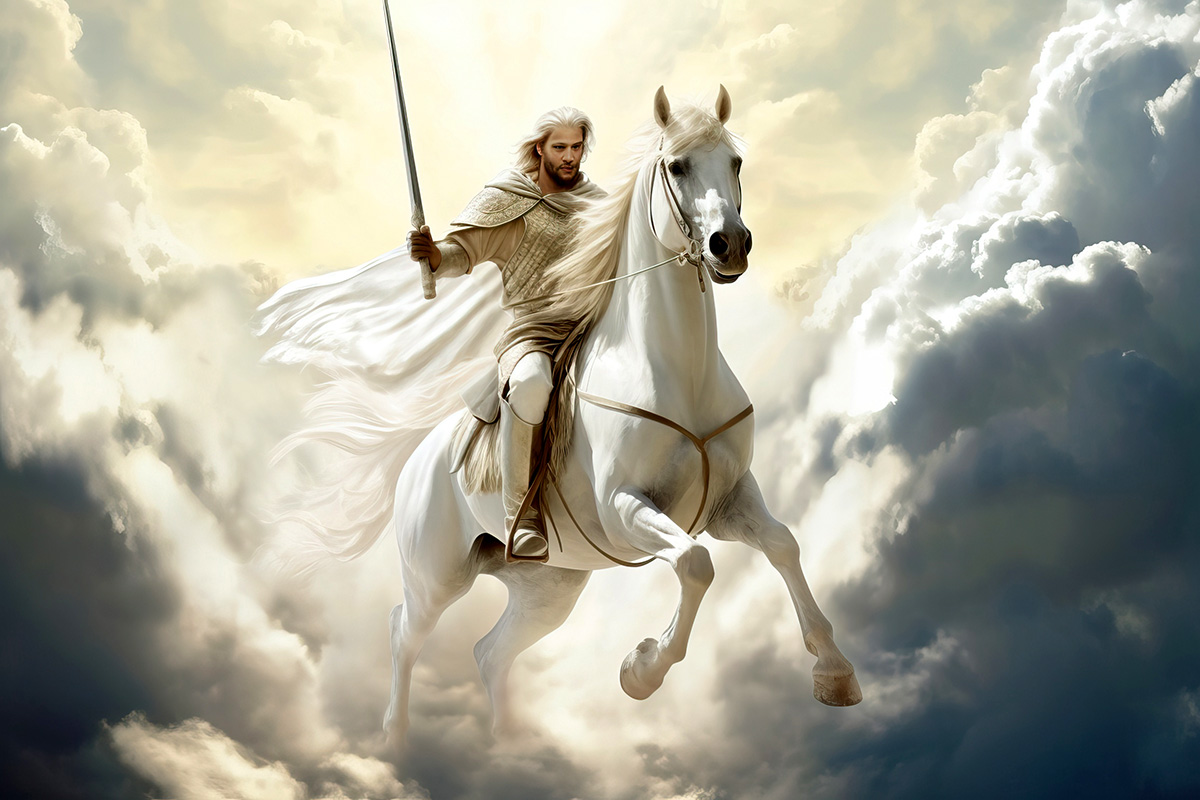 Christ as The Rider on the White Horse in Revelation 19:11-16 Adobe Stock