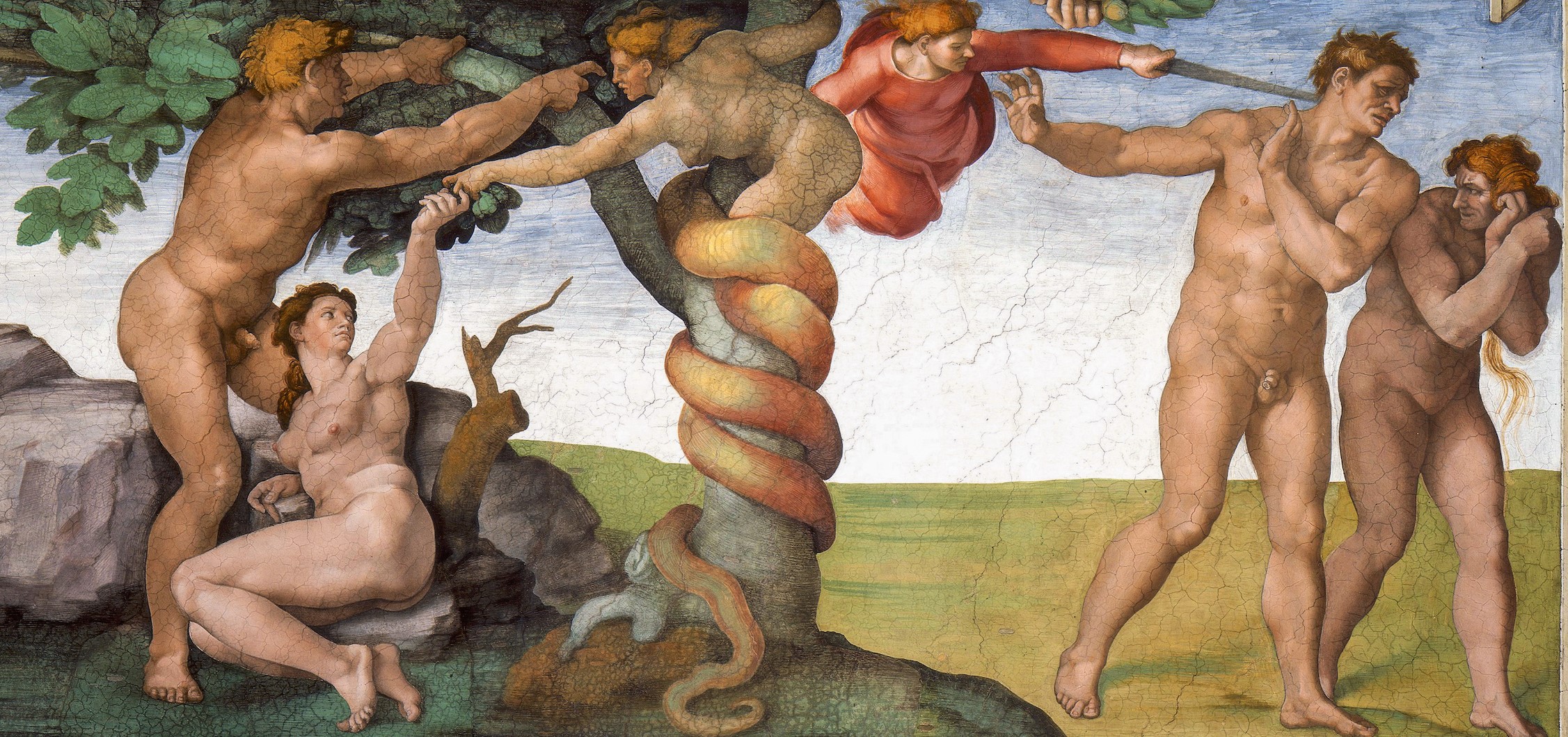The Fall of Man Painting by Michaelangelo Sistene Chapel, Rome