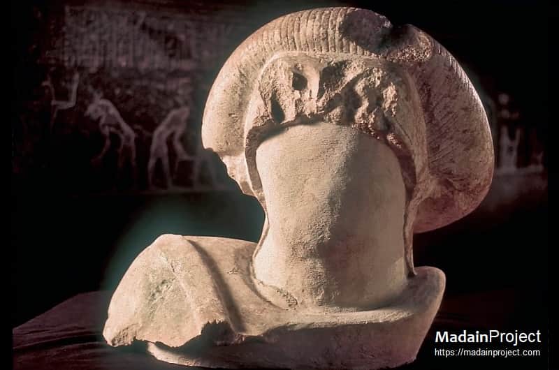 Head of a damaged statue thought to be of Joseph with fragments of a robe showing a shoulder piece with coloured stripes found beside a tomb in a temple at Avaris, Egypt. Significantly, archaeologists did not find a body - Joseph's body was eventually taken back to Shechem in the land God promised his people