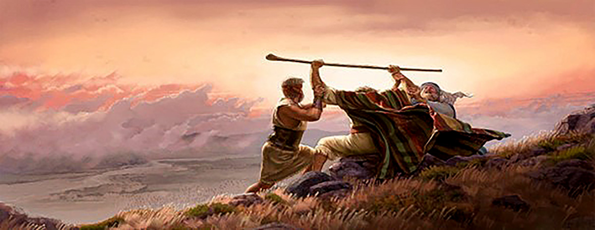 Moses gave Joshua, his second-in-command, the order to attack them, while he, Aaron and Hur would stand on the top of the hill overlooking the plain.