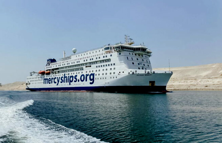 MV Global Mercy of Mercy Ships passing through the Suez Canal Photo: Mercy Ships